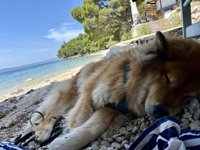 Nach einem gemütlichen Start in den Tag haben wir es uns am Strand von unserem Campingplatz gemütlich gemacht. Sogar am Hundestrandabschnitt sind Liegen und Schirme vorhanden! Es ist wirklich ein tolles Fleckchen Erde <3