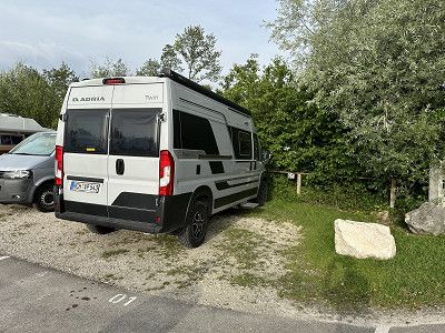 Die Fahrt war mit kleinen Staus verbunden und wir sind nach 480 km mit kleinen Stopps (tanken und Gassistopp am Millstätter See) erst auf 19 Uhr an unserem Übernachtungsplatz angekommen.