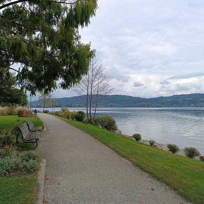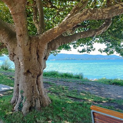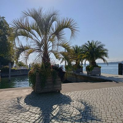 Vom Stellplatz kann ein schöner Spaziergang um den Ort und durch den Park am Bodenseeufer gestartet werden.