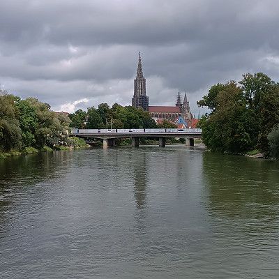 Von Stellplatz bis zum Ulmer Münster (Kirche im Stadtzentrum) sind es ca. 2,5km Fuß- oder Radweg.