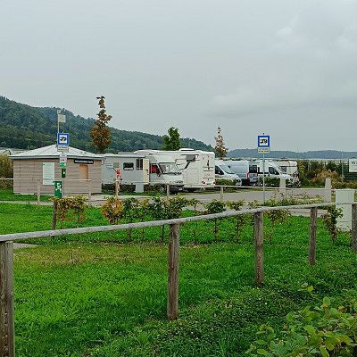 Sauberer kleiner Wohnmobilstellplatz, welcher sich am Ortsrand befindet und von Apfelplantagen umgeben ist.