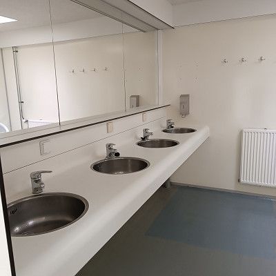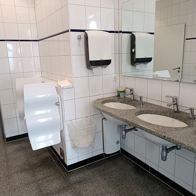 Auf dem Platz gibt es ein Sanitärhaus mit ausreichend Toiletten und Duschen. Direkt am Sanitärgebäude befindet sich die Müllentsorgung, die V/E Station und die Trinkwasserstelle. Andere Wasserstellen gibt es auf dem Platz nicht und es muss unter Umständen ein längerer Weg in Kauf genommen werden.