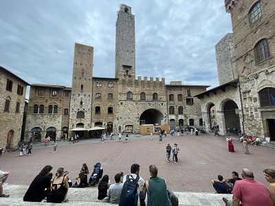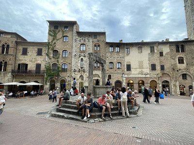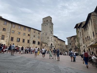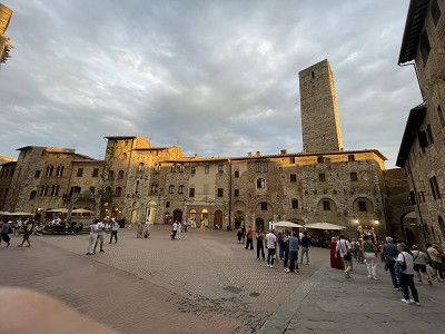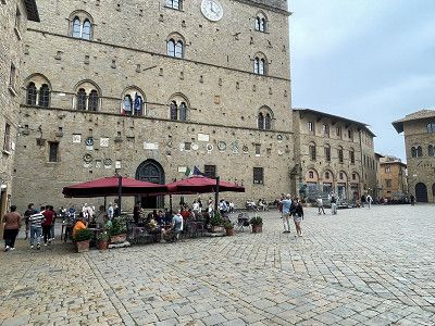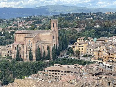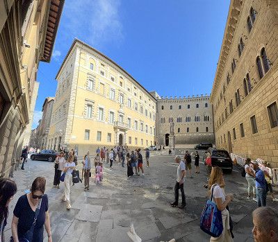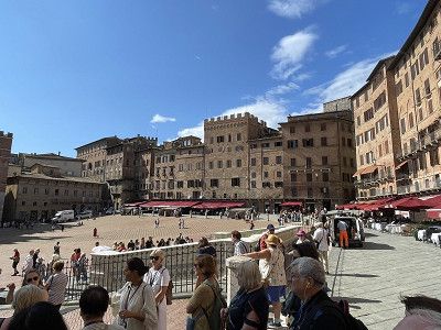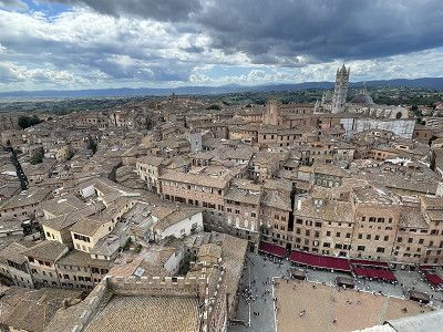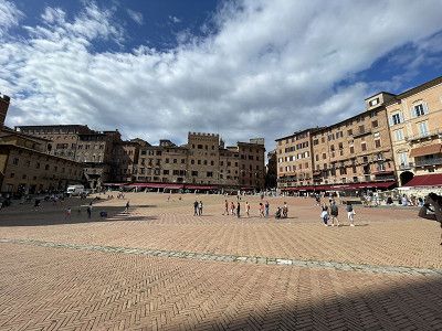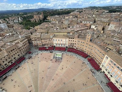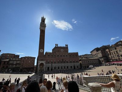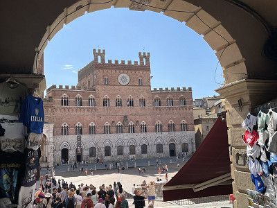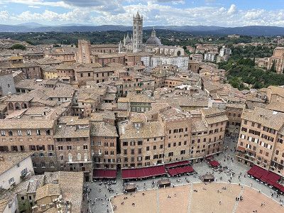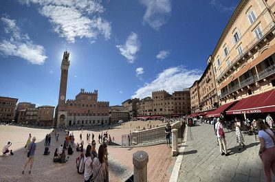 Am fächerförmigen Hauptplatz, der Piazza del Campo, liegen das gotische Rathaus (Palazzo Pubblico) und der Torre del Mangia. (unbedingt besteigen)
