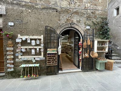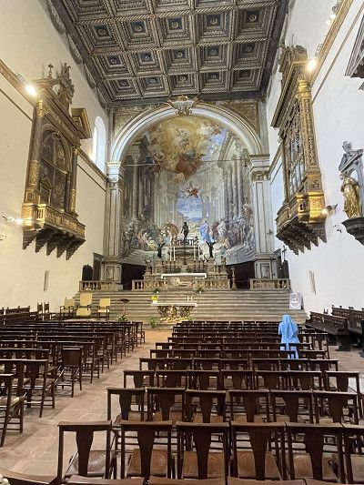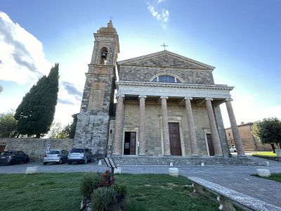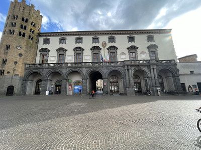 Der Dom verfügt über einen Marmoreingang und eine vergoldete Kassettendecke. In der Nähe befinden sich die Überreste der etruskischen Akropolis.