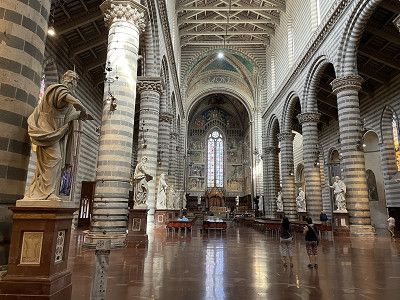 Pozzo De San Patrizio, dieser 58,5 m tiefe Brunnen wurde im 16. Jahrhundert erbaut und besitzt zwei nebeneinander laufende, spiralförmig angeordnete Treppen. Auf diesen konnten einst mit Wassereimern beladene Esel zugleich hoch- und hinunterlaufen