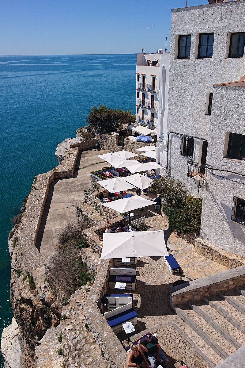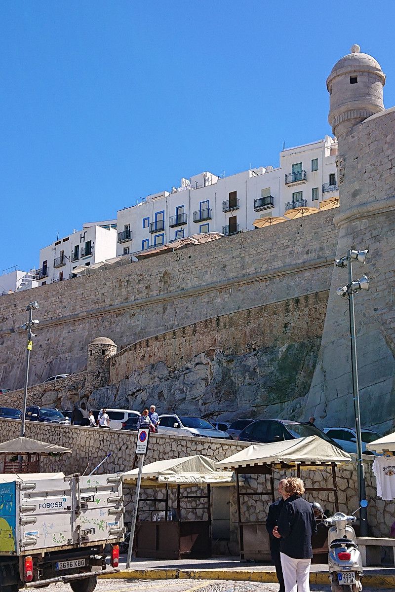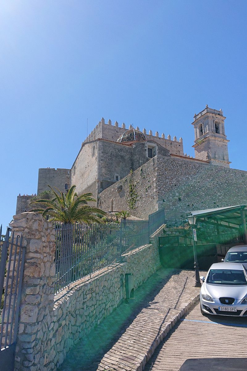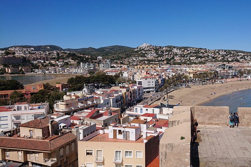Heute ist endlich schönes Wetter, 25 Grad. Also noch einmal Ferien geniessen. Und wo ginge das besser als - lt. Werbung - in einem der schönsten Ferienorte Spaniens: Peñiscola. Vor der Stadt liegt auf einer Halbinsel das Wahrzeichen: die von den Tempelrittern erbaute Burg umsäumt von schmalen steilen Gassen der Altstadt. Unten zwei kilometerlange Sandstrände und Hotel neben Hotel. Naja.
