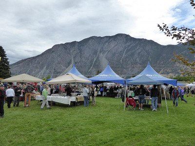 Am 19.9. fahren wir weiter nach Westen durch das Similkameen Valley. In Keremeos decken wir uns nochmals mit frischem Obst und Gemüse an den bunt dekorierten  Erzeugerständen ein.