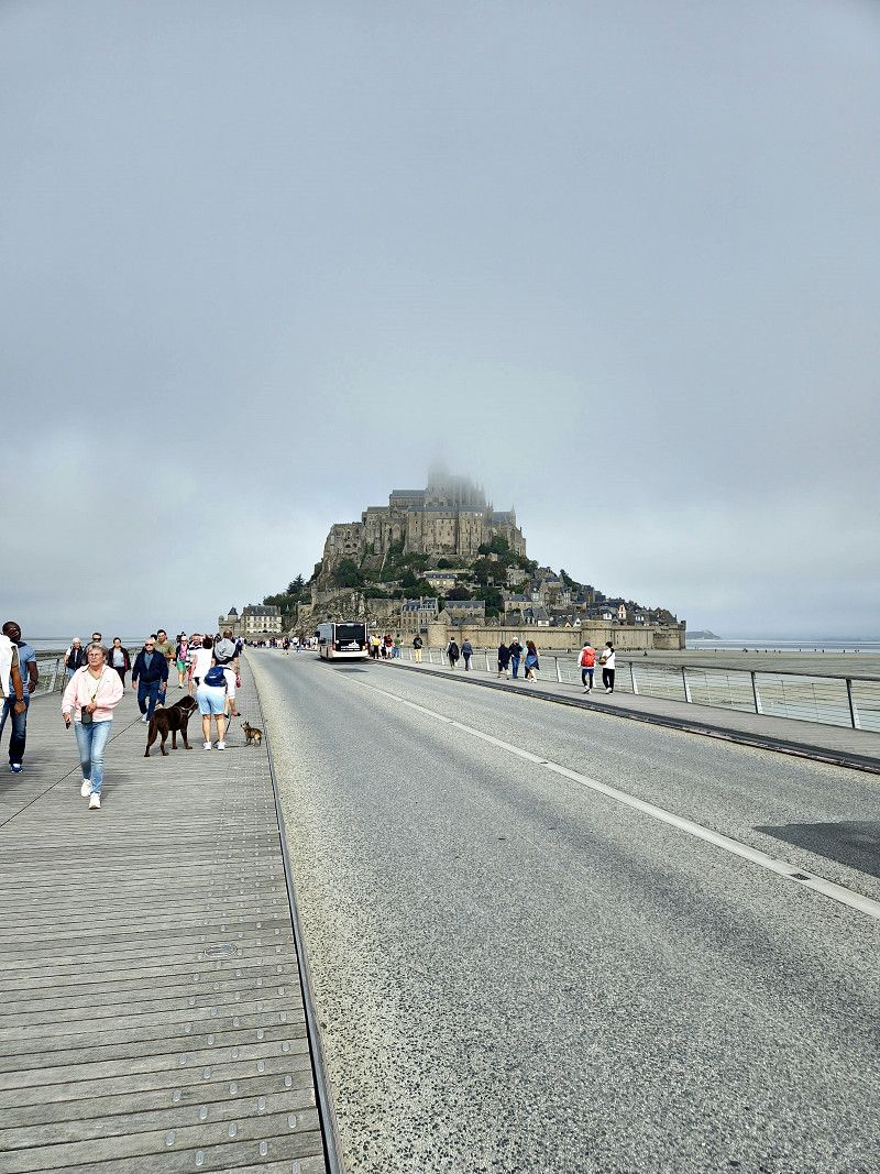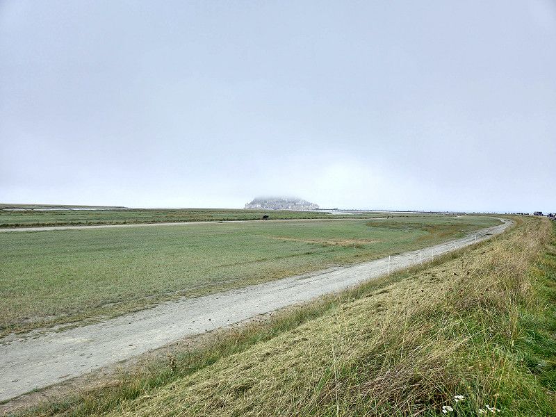 Gute 5km von St.Michel entfernt liegt der Stellplatz. Immer am Fluß Couesnon entlang kommt man zur Insel. Schon von weiten ist sie normalerweise zu sehen, wenn man wie wir Nebel hat....