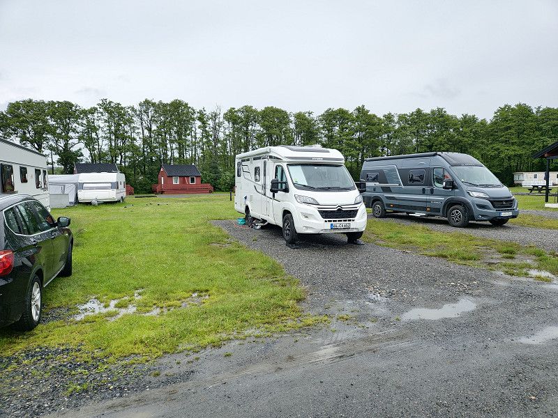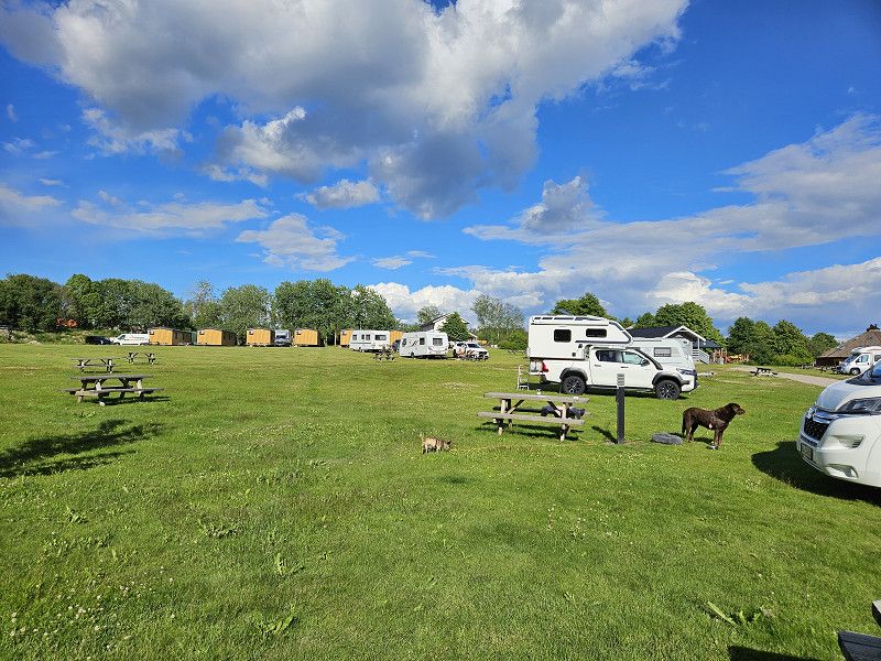 Der 3. Stopp, gute 80km vor Oslo. Da wir nicht wussten, wielange wir beim Zoll mit den Hunden bräuchten, fiel die Wahl auf diesen Campingplatz.