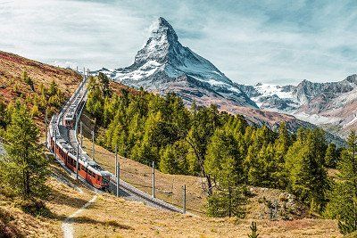 On to the next highlight of the Grand Tour of Switzerland: the Matterhorn. This huge, pyramid-shaped mountain is considered to be the most photographed mountain in the world, with its characteristic, unmistakable shape bearing responsibility for this claim to fame. In the shadow of this giant lies the small, car-free town of Zermatt, which can only be reached on foot, by mountain bike or by train from Täsch. The last campsites before Zermatt are also in Täsch. Another option is to leave your motorhome or campervan on one of the outdoor parking spaces at the Matterhorn Terminal Täsch, from where there is a regular shuttle train service to Zermatt. You can choose which type of mountain railway you want to take from Zermatt to get the best view of the Matterhorn, e.g. from the Klein Matterhorn (Matterhorn Glacier Paradise). You can take a cable car from Zermatt to the mountain station at 3,820 m above sea level, the highest cable car station in the Alps. Other observation points include the Gornergrat or the Rothorn. The first electric rack railway in Switzerland takes about 30 minutes to get to the Gornergrat from Zermatt. The viewing platform is open all year round.