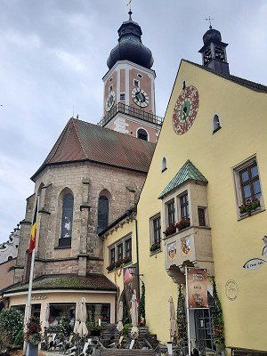 Schön ist der Stadtplatz mit den eng stehenden Giebelhäusern und dem Brauereigasthof ›Zum Kuchlbauer‹. Das Wahrzeichen der Brauerei, der Kuchlbauer Turm, wurde von Friedensreich