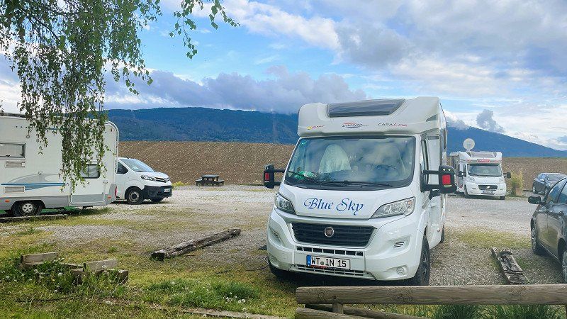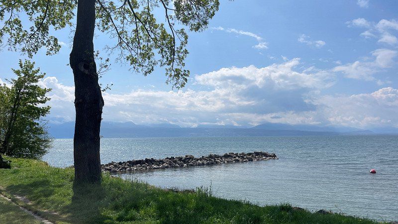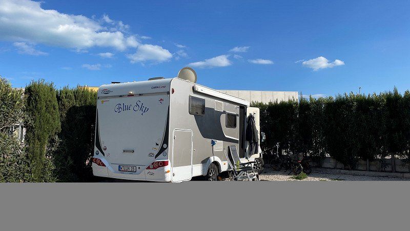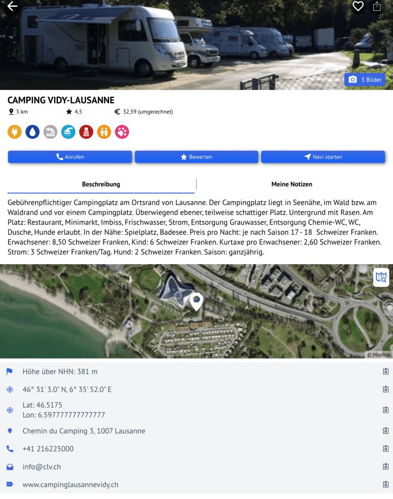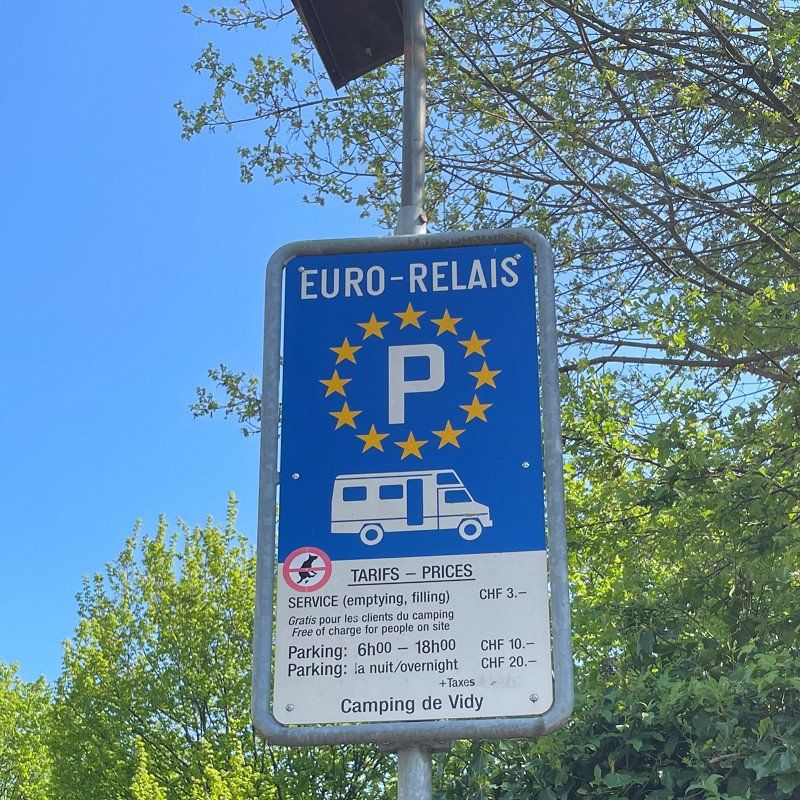 Our first stage took us through Switzerland to Geneva to the CP Geneva-Camping. The site is in the middle of the industrial area and right on the runway at Geneva Airport. Due to the industrial and aircraft noise, the place is only suitable for us as a stage place. The price for one night including electricity and supply and disposal is 51.- Sfr