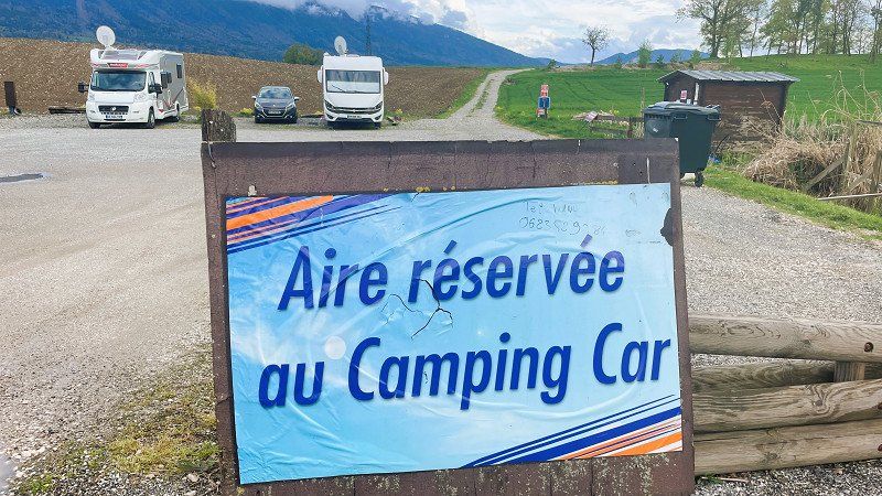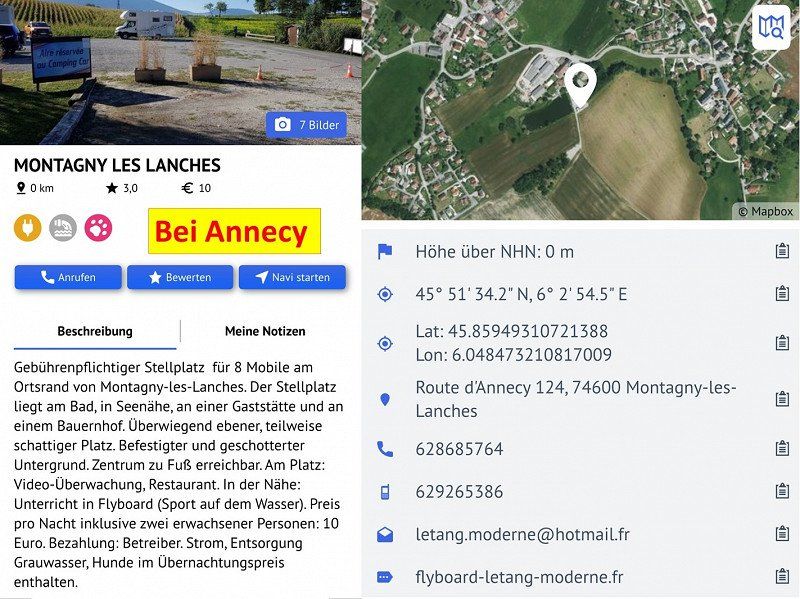 On the way home we found this fine little pitch near Annecy. Parking space with attached restaurant, which was closed when we visited. A small lake / pond creates an idyllic atmosphere.