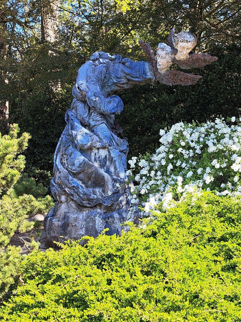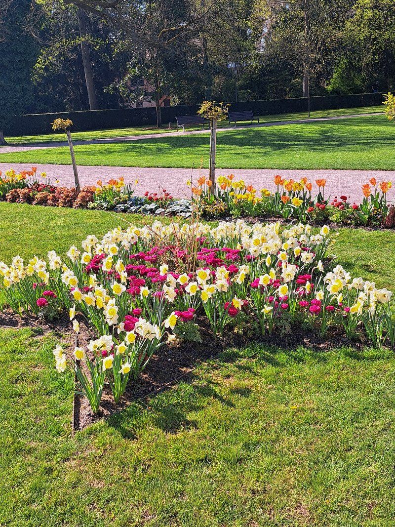 It is a beautiful park with beautifully landscaped, colorful flower beds.