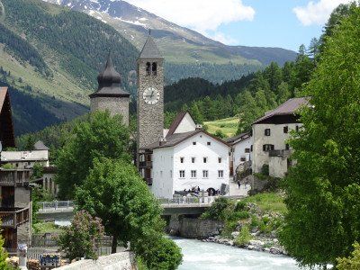 Zum Abschluss der Wanderung suchen wir noch die alte, aus dem Mittelalter stammende Kirche mit den Fresken aus dem 15. Jahrhundert. Dann geht es mit der Rhätischen Bahn zurück nach Zernetz, wo wir uns mit einem Griechischen Salat belohnen.