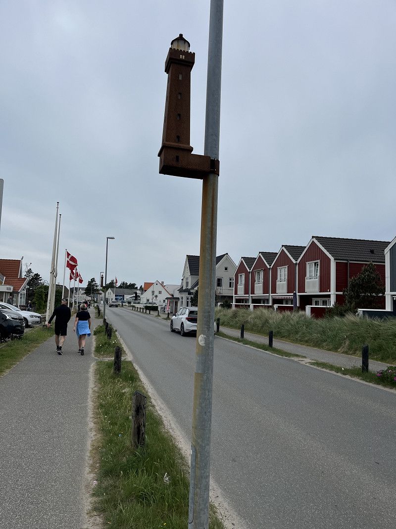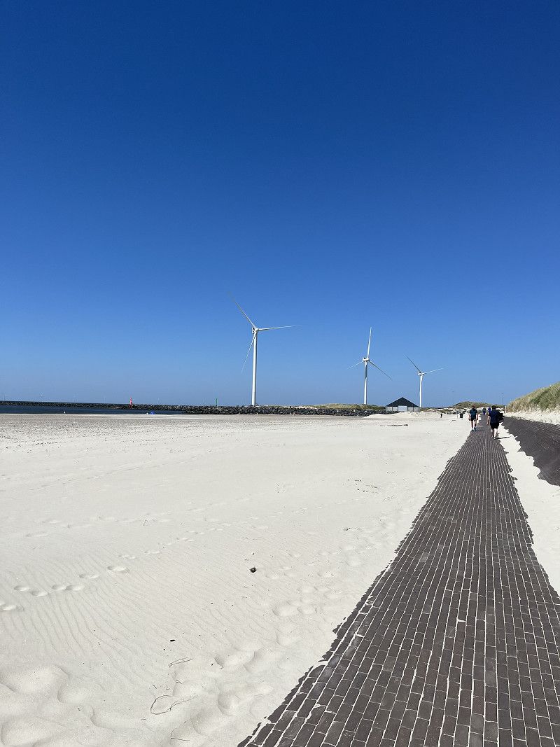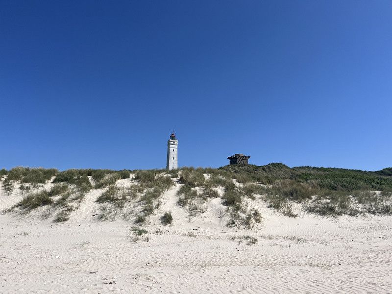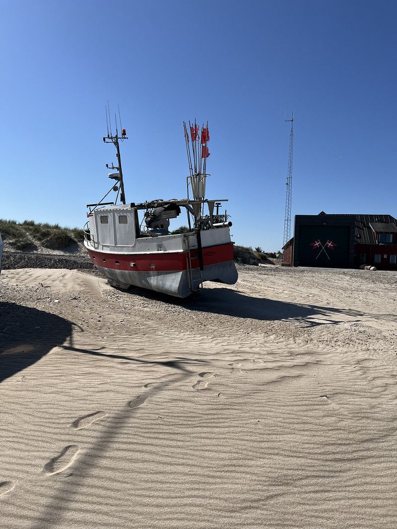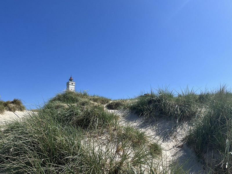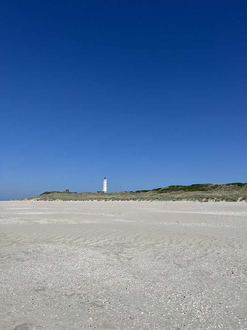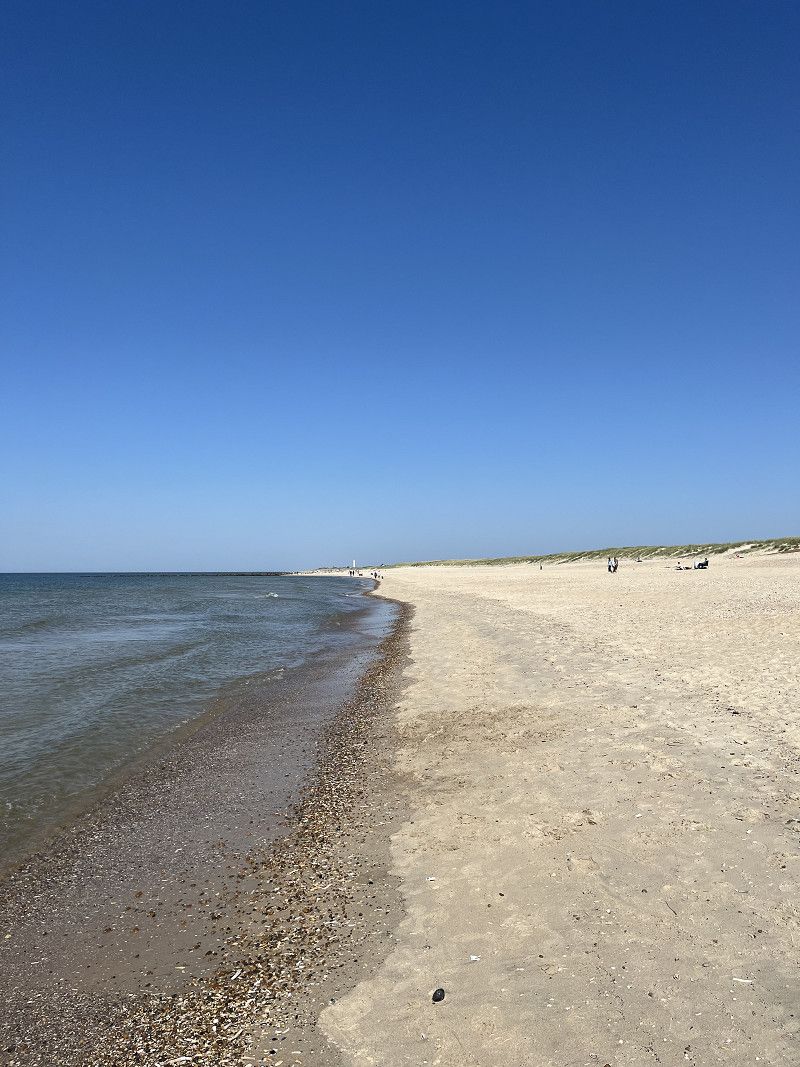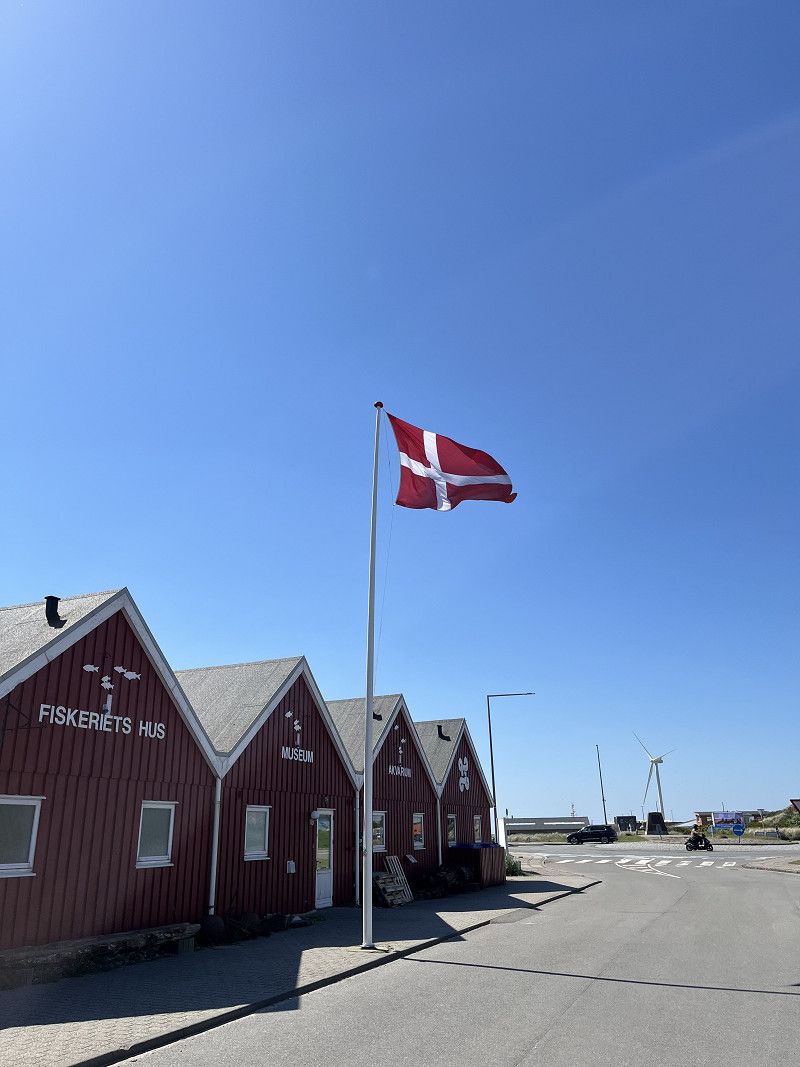 Between Thorup Strand and Blåvand lies Hvide Sande, a popular destination for surfers, kitesurfers and other water sports enthusiasts. There is also a beautiful, almost endless sandy beach. The few beachgoers enjoyed the beautiful but windy weather. The large wind turbines that were built in the middle of the sea also caught our attention. In the harbor of Hvide Sande is "omhu:". This company collects garbage from the sea with the aim of making jewelry, bags, clothes and much more in their workshop (https://www.om-hu.dk/). We couldn't resist and bought ourselves a ring and keychain. After (a short) shopping trip, we ate fish and chips with delicious fish from the North Sea right next door. Then our journey continued to Blåvand.