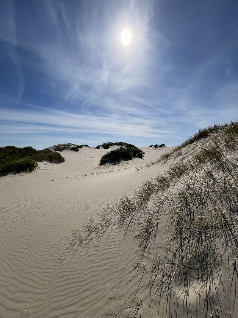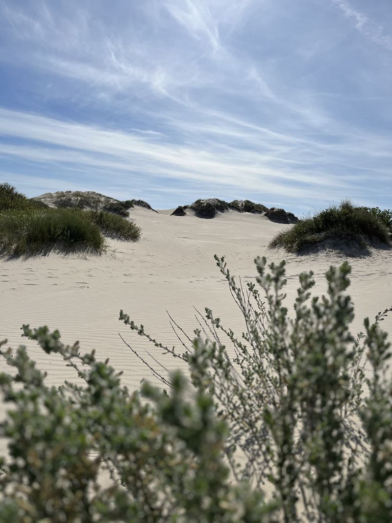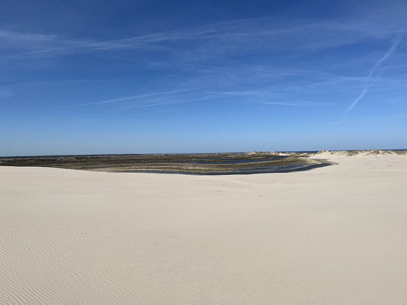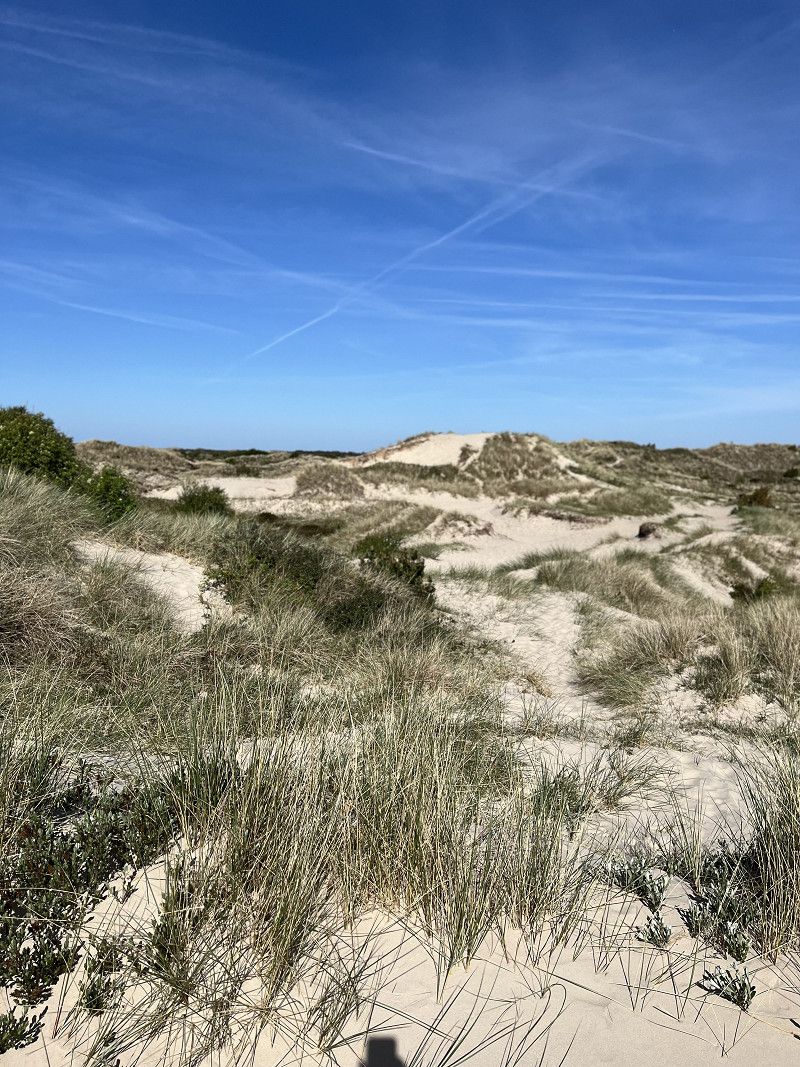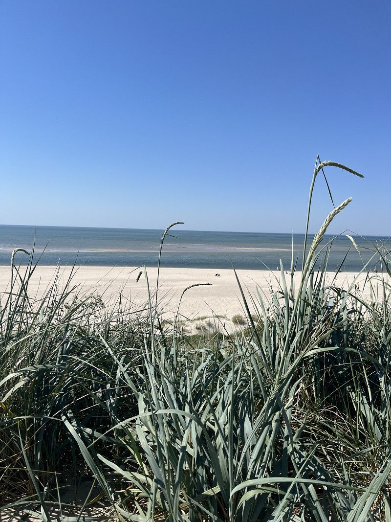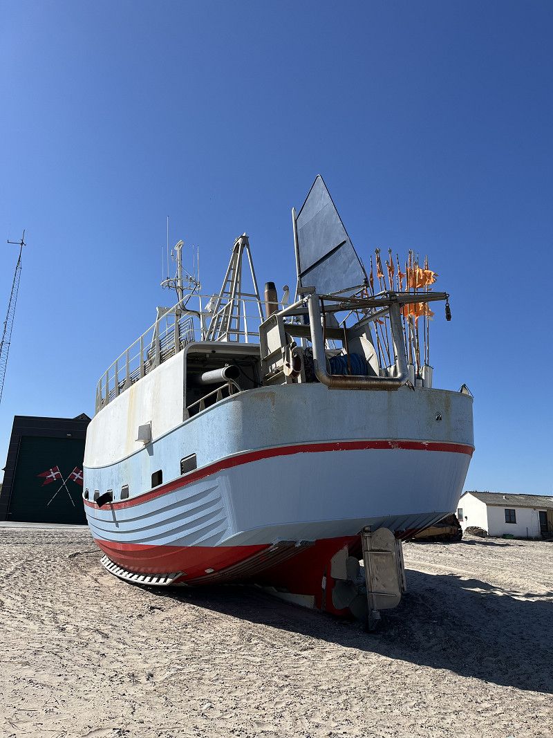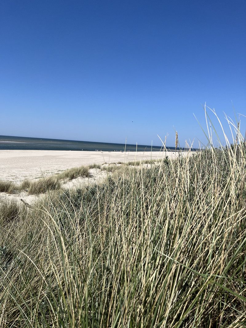 Between Thorup Strand and Blåvand lies Hvide Sande, a popular destination for surfers, kitesurfers and other water sports enthusiasts. There is also a beautiful, almost endless sandy beach. The few beachgoers enjoyed the beautiful but windy weather. The large wind turbines that were built in the middle of the sea also caught our attention. In the harbor of Hvide Sande is "omhu:". This company collects garbage from the sea with the aim of making jewelry, bags, clothes and much more in their workshop (https://www.om-hu.dk/). We couldn't resist and bought ourselves a ring and keychain. After (a short) shopping trip, we ate fish and chips with delicious fish from the North Sea right next door. Then our journey continued to Blåvand.