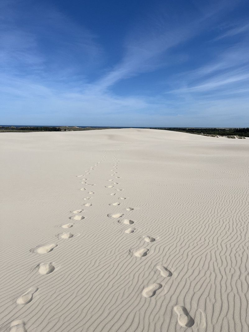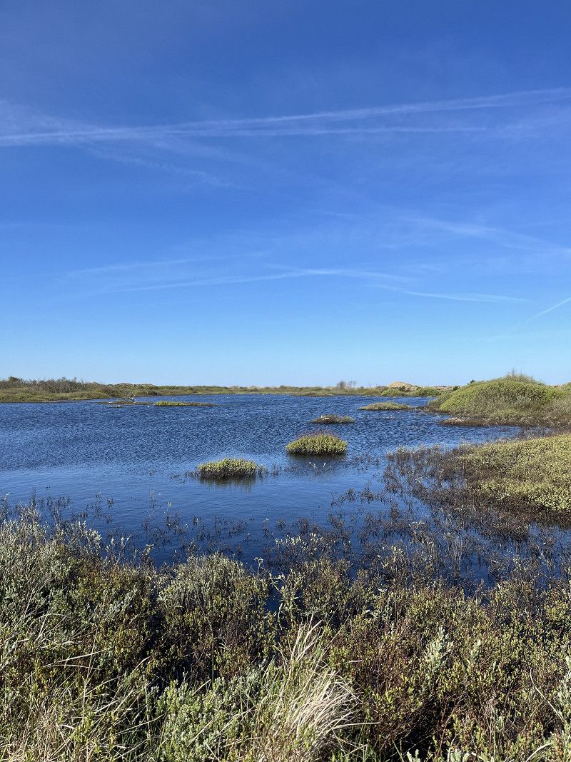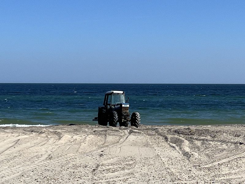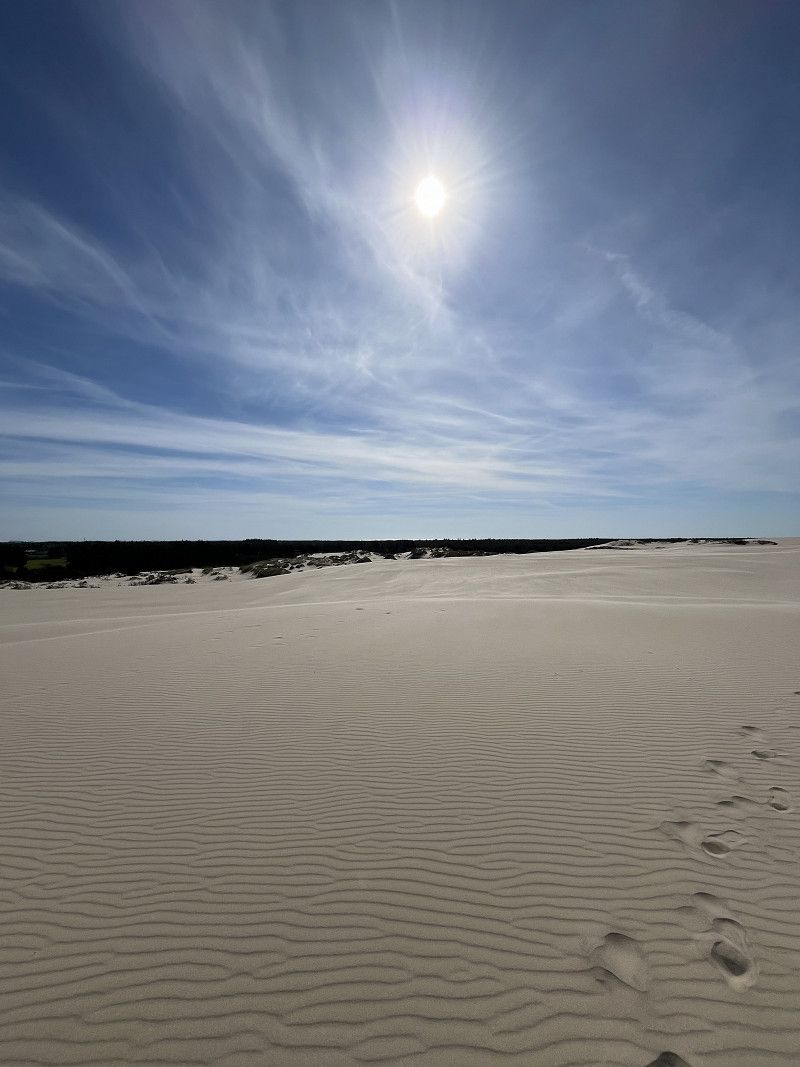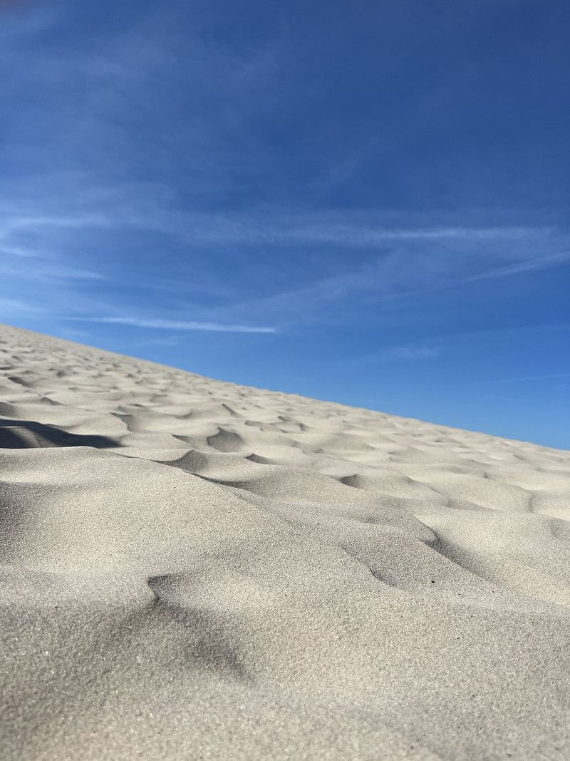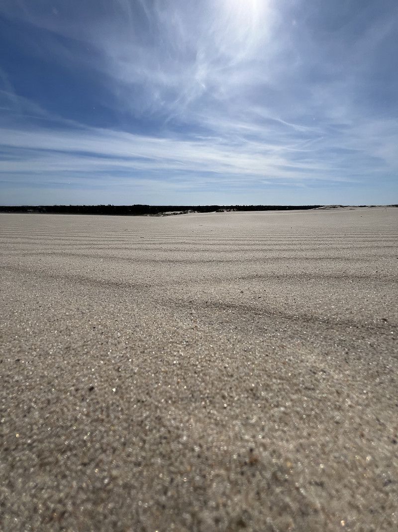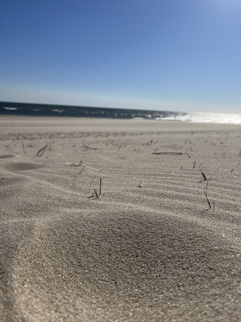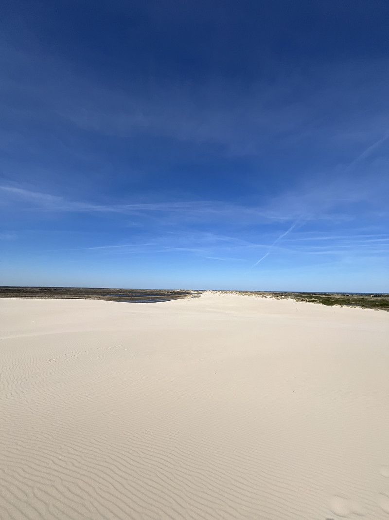 Between Thorup Strand and Blåvand lies Hvide Sande, a popular destination for surfers, kitesurfers and other water sports enthusiasts. There is also a beautiful, almost endless sandy beach. The few beachgoers enjoyed the beautiful but windy weather. The large wind turbines that were built in the middle of the sea also caught our attention. In the harbor of Hvide Sande is "omhu:". This company collects garbage from the sea with the aim of making jewelry, bags, clothes and much more in their workshop (https://www.om-hu.dk/). We couldn't resist and bought ourselves a ring and keychain. After (a short) shopping trip, we ate fish and chips with delicious fish from the North Sea right next door. Then our journey continued to Blåvand.