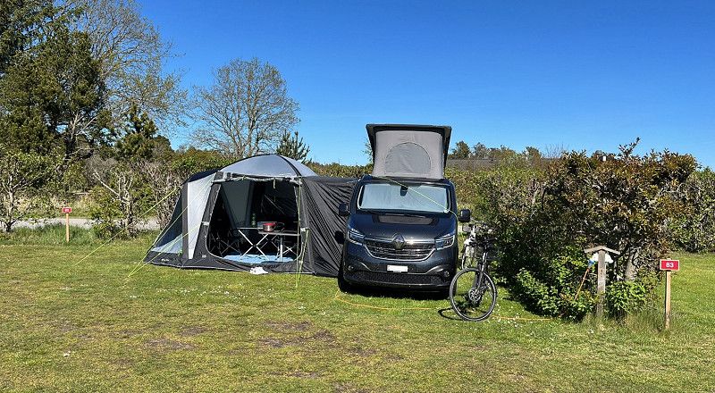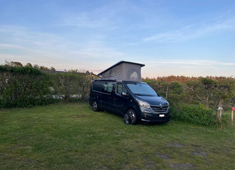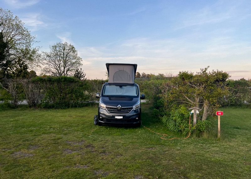 The plan was that we would drive from home to Soltau on the first day and spend the night at a campsite there. The start of the trip was anything but ideal, because after just an hour of driving we were stuck in a traffic jam, or rather in congested traffic, and lost almost an hour there. Then we continued on the A7 across Germany. There were repeated minor delays during the journey due to the many construction sites. Despite the delays, we decided early on to drive on to Flensburg if possible instead of to Soltau as planned and spend our first night there. So we parked our van after around 12 hours of driving and a distance of almost 1000 km.