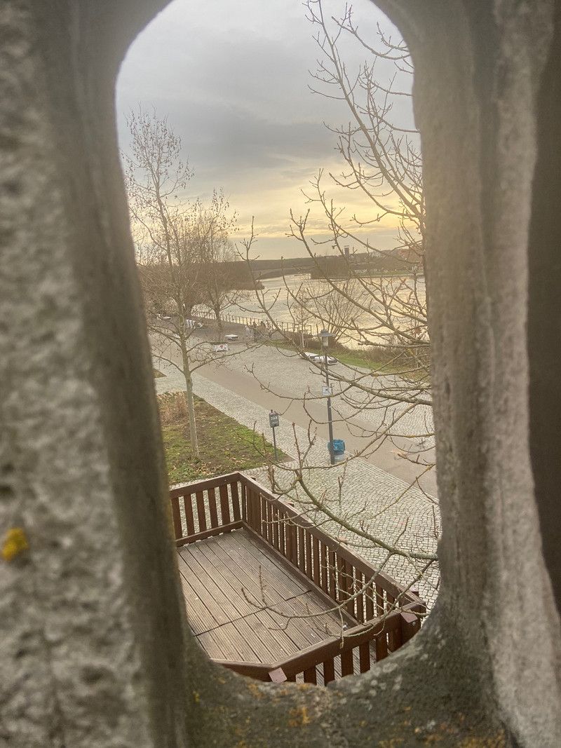 We stayed right next to the old town, which turned out to be a bus parking lot that was hardly occupied in winter. So we didn't stay at the specified camper place, which is 350 m further from the old town.