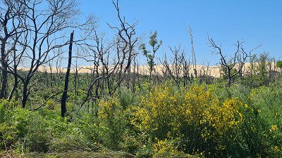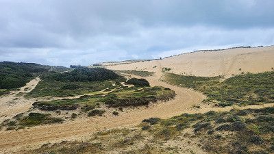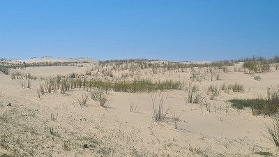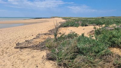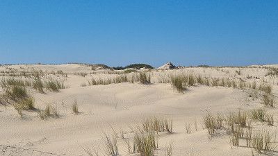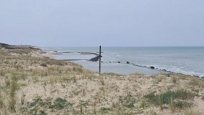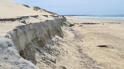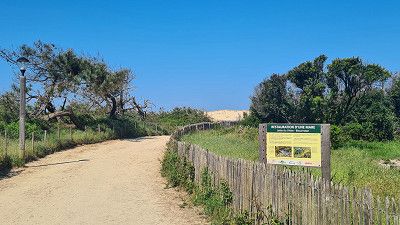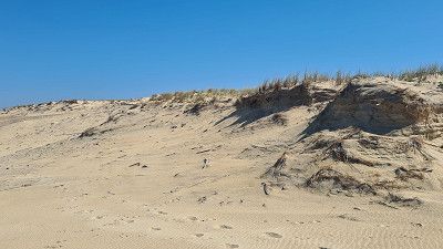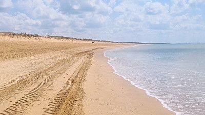 La Belle Henriette. Gut 6 Kilometer nördlich vom Camp liegt ein weiterer Zugang zum Naturreservat de la Belle Henriette. Ich fahre am späteren Vormittag mit dem eBike dorthin und laufe eine gute Stunde über Strand und Dünenlandschaft.