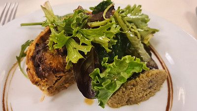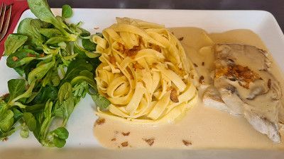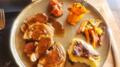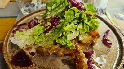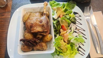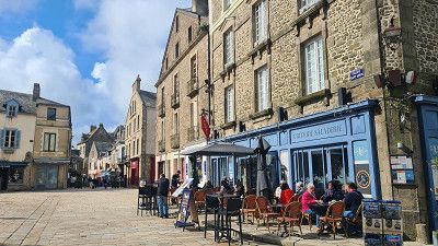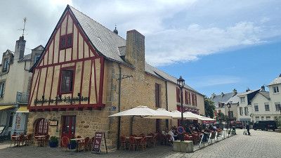 Die Kulinarik. Ich suche die Crêperie Le Logis im Zentrum von Guérande auf und bekomme ohne Reservation grade noch den letzten freien Tisch. Das Lokal ist klein, es ist eng, hat aber ein tolles Ambiente. Der freundliche Wirt empfiehlt mir Galette aux Asperges und Poisson du Jour und ich fahre sehr gut damit (1-3). Auch weil draussen nun heftige Gewitter über die Region ziehen und alle irgendwo Schutz suchen.