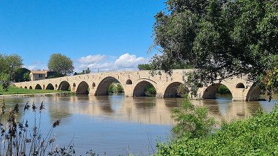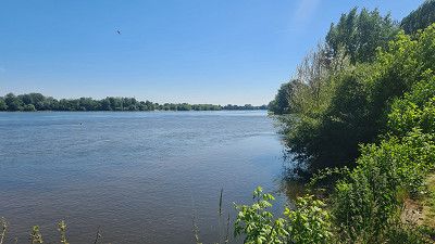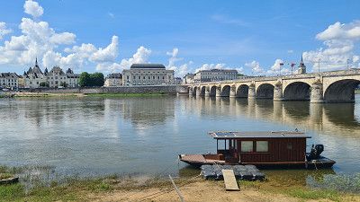 Der Besuch Langeais. Im kleinen Ort Langeais parke ich das Wohnmobil auf einem öffentlichen Parkplatz an der Loire und spaziere eine knappe Stunde durch den Ort mit seinem Schloss (7-13). Dann laufe ich zurück zur Loire bei der Pont de Langeais und setze meine Fahrt nach Bourges fort.