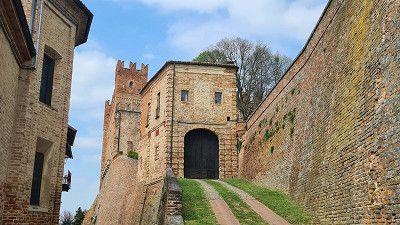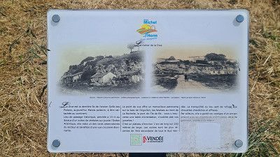 Die Weiterfahrt. Nach dem Besuch der Point de L'Aiguillon fahre ich erst den halben Weg am Delta (1) entlang zurück, danach biege ich ab in das Hinterland der Marais Poitevin. Schon von weitem fällt in dieser flachen Marschlandschaft der Rocher de la Dive (2-4) auf, ein Dorf auf einer 15 Meter hohen Felseninsel aus Oxford-Sandstein 1'000 Meter lang, 250 Meter breit. Ich fahre weiter zum nächsten Ziel, Saint-Michel-en-L'Herm.