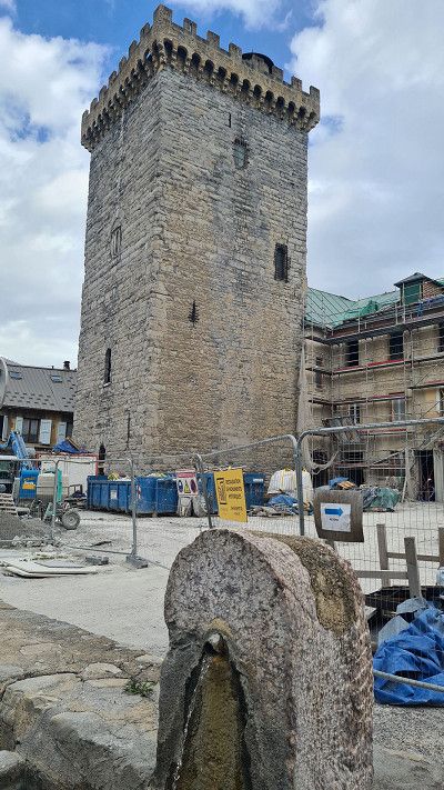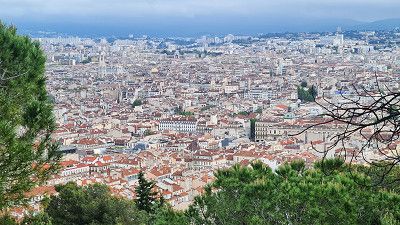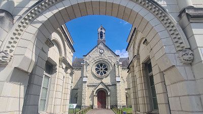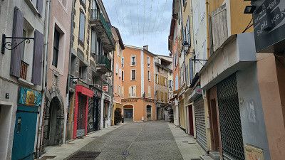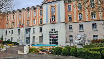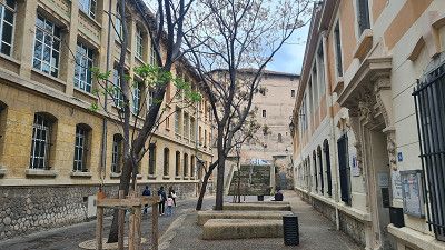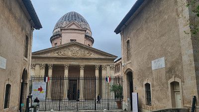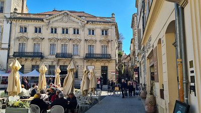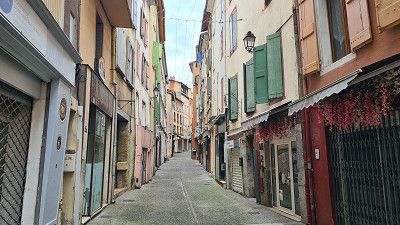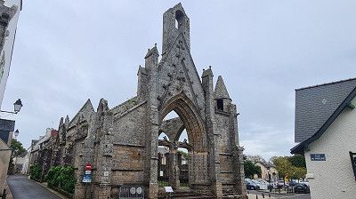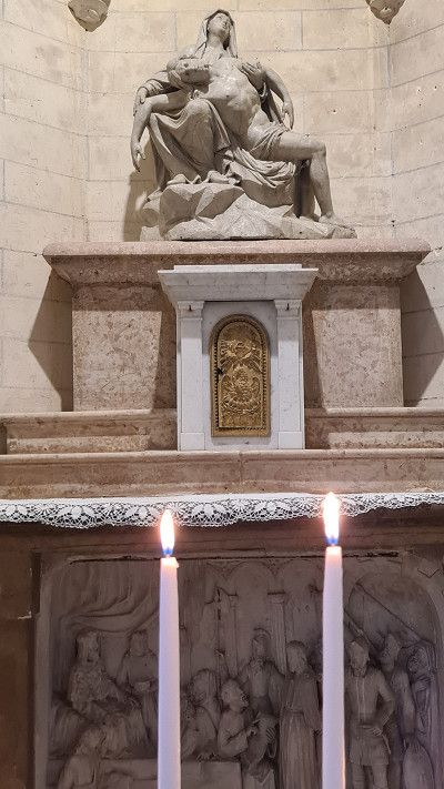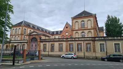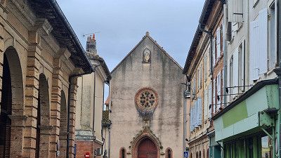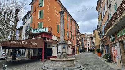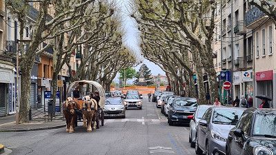 Der Spaziergang. Ich habe noch genug Zeit für einen ein stündigen Spaziergang über den Hügel, der dem Kalvarienberg gegenüberliegt. In diesem Ortsteil befinden sich zwei grosse Lycéen und das Hospital (12-15), besondere Bauten, die meine Interesse beim Blick vom Kalvarienberg gestern geweckt haben. Nach der Erkundung geht es zurück ins Zentrum zu einem Pression vor dem Le Montana, einem Treffpunkt für Motorradfahren, und verfolge das emsige Treiben rund um den Place mit der Porte Notre-Dame.