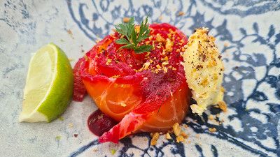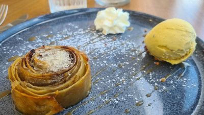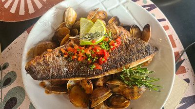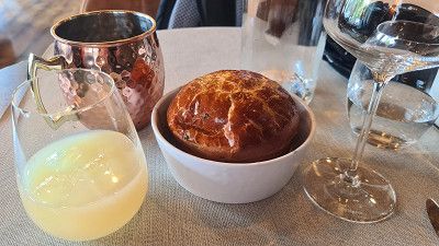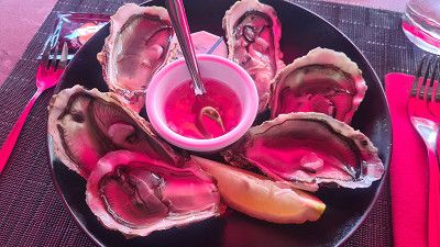 Die Kulinarik. Auf dem Weg vom Norden in den Süden der Halbinsel halte ich beim Restaurant Lays 4 Sens. Das Lokal ist von Einheimischen gut besucht und ich bestelle Escargots und den Sole meunière (1-5). Das Amuse bouche zum Ricard ist ein Brioche citron, interessant. Aber wie alles in diesem Lokal ist auch das sehr stimmig.
