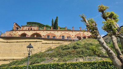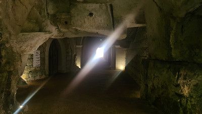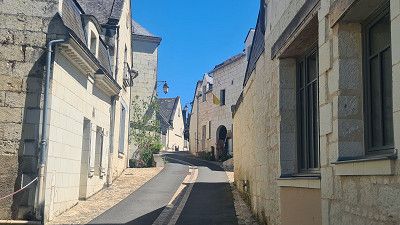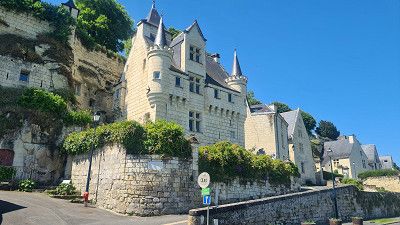 Die Höhlen. Der Radweg folgt nun dem Parcours Troglodytique entlang der mit Felsen und Höhlen verbauten Häuser, teils auch durch die Höhlen selbst (6-11). Markant hebt sich in der Mitte des langgezogenen Dorfs das Château Souzay (12-13) hervor. Auch in den nächstfolgenden Orten Parney und Turquant sind diese Felsen und Höhlen direkt an der Loire zu finden. Der Radweg zweigt hier aber und steigt hoch in die Weinberge zur Église Saint-Maurice (14) und zum Château de Villeneuve (15).