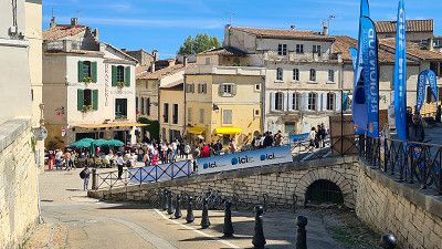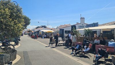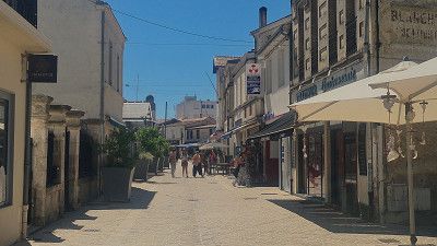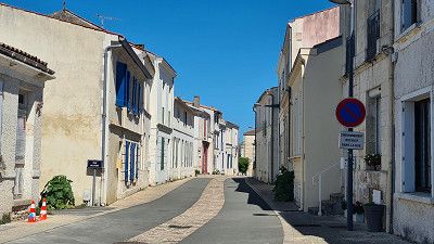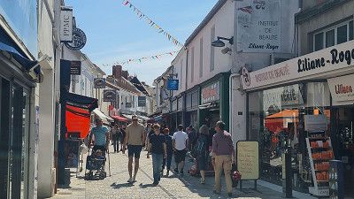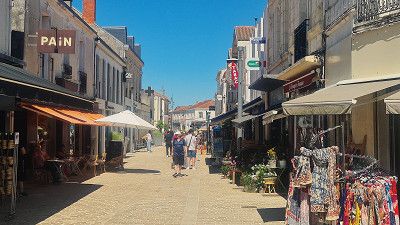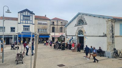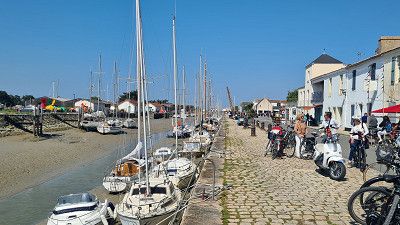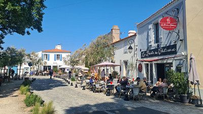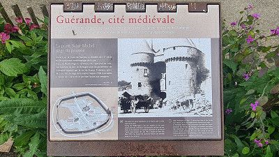 Die Besichtigung. Der Hauptort der Insel wird die Touristik besonders auffallend. Viele Touristen sind zu Besuch und bevölkern den Markt und den Quai Cassar am Étiers du Moulin (1), als ich dort ankomme. Aber der Ort ist auch durchaus sehenswert. Ich nehme das eBike an die Hand und laufe eine halbe Stunde durch das Zentrum mit Église abbatiale Saint Philbert, Château, Rathaus (2-5) und ruhigen oder lauten Gassen (6-13). Am Ende meines Bummels lädt mich das L'Arc en Ciel (14) zu einer Erfrischung ein, bevor mir ein altes Strassenschild (15) auf den weiteren Weg verweist.