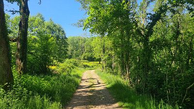 Die Fahrt. Ich folge heute mit dem eBike der Loire knappe 20 Kilometer flussaufwärts. Der schöne Radweg Loire à Vélo liegt hier meist direkt an der Loire und führt auch durch Wälder im Naturpark Anjou-Touraine (1-5). Nach 10 Kilometern komme ich zu meinem ersten Ziel, die Felshöhlen von Souzay-Champigny.