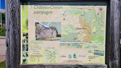 Der Plan. Ruhetag. Wohnmobilpflege. Mittagessen. Kurzer Spaziergang in der Umgebung. Übernachtung im Camping Car Park Château-Chinon verlängert.