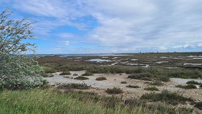 Der Plan. Velotour im Süden der Vendée. Spaziergang rund um die Landzunge Pointe de L'Aiguillon. Besichtigung von Saint-Michel-en L'Herm mit der Abbaye Royale. Übernachtung im Camping Car Park La Faute-sur-Mer verlängert.