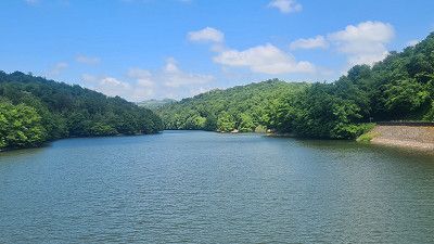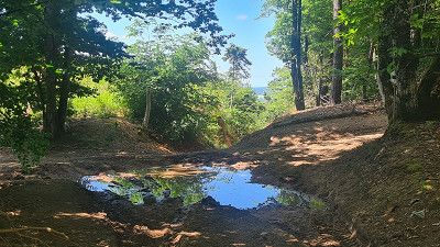 Die Fahrt um den See. Im Verlauf des Vormittags beginne ich die Rundfahrt durch das Morvan. Es geht meist auf Landstrassen, es gibt keine Radwege, einige wenige Forstwege, die aber wegen des Gefälles zu Fuss mit dem eBike passiert werden müssen. Es sind am Ende 40 Kilometer, die Route von Komoot ist anspruchsvoll mit vielen starken Steigungen und den steinigen Stellen zu Fuss. Ohne eBike wäre es ein Mühsal, zurück im Camp ist der Akku denn auch vollends leer. Zum Ziel, dem Lac du Pannecière geht es 12 Kilometer auf der Landstrasse auf und ab durch Wald und vorbei an Wiesen (1-2). Dann kommt der See in Sicht (3) und die Route geht über Feldwege (4) hinunter zum Beginn der Umfahrung (5-8) und weiter bis zur Passage du Pannecière über die Staumauer (9-10). Die Passage ist aber für jeglichen Verkehr inklusive Velo und Fussgänger gesperrt (11). Eine Umleitung führt über den kleinen Lac de Pannecière (12-13) mit einem kurzen Sentière zum  Observatoire Ornithologique Morvan. Aber auch die Beobachtungshütte ist verschlossen. Ich setze die Umfahrung fort und bin bald am anderen Ende der Passage und zurück am See (14-15).