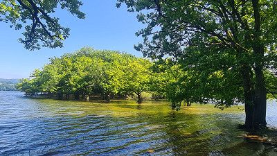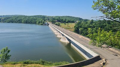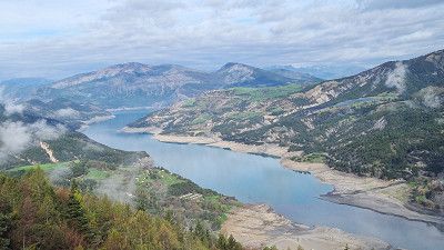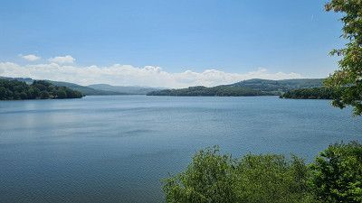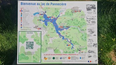 Gut zu wissen. Der Lac de Pannecière ist ein Stausee im Département Nièvre in Frankreich . Er liegt auf einer Höhe von 320 Metern und hat eine Fläche von 5,2 Quadratkilometern mit einem Einzugsgebiet von 220 Quadratkilometern. Er ist der grösste See des Morvan. Sein Bau wurde nach den grossen Überschwemmungen der Seine von 1910 geplant als öffentlicher Versorgungsbetrieb erklärt und Teil der EPTB Seine Grands Lacs. Die Arbeiten begannen 1937, wurden im Zweiten Weltkriegs unterbrochen, 1946 wieder aufgenommen und 1949 abgeschlossen. In Zeiten hoher Auslastung waren bis zu 550 Arbeiter auf der Baustelle. Zum Bau gehörten auch 16 Kilometer Strassen und sechs Brücken. Zwei Weiler wurden bei der Stauung des Stausees überflutet: „Pelus“ (vollständig) und „Blaisy“ (teilweise). Überreste sind noch heute bei der jährlichen Teilentleerung oder der vollständigen Entleerung alle zehn Jahre zu sehen: Zum Beispiel Steinhaufen, Steinbrücken, und Strassen, die die Weiler durchquerten. Im Jahr 1950 wurde ein von EDF verwaltetes Wasserkraftwerk errichtet. Dieses Kraftwerk nutzt den durch den Damm entstandenen Wasserfall zur Stromerzeugung. © Wikipedia.