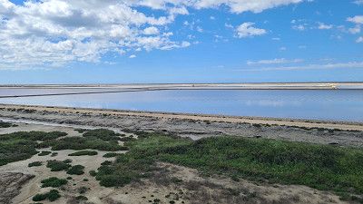 Die Rückfahrt. In L'Herbaudière gibt es sonst nicht viel zu sehen und so beginne ich die Rückfahrt. Sie wird ebenso eindrücklich durch die Salants (10), aber anstrengend wegen des anhaltend starken Gegenwinds. Einen weiteren Halt lege ich bei den Dunes de la Tresson ein und vertrete mir ein paar Minuten bei einem Spaziergang die Beine (11-13). Den letzten Halt mit einer Erfrischung lege ich in Barbâtre (14-15) ein. Dann komme ich wieder an der Passage du Gois vorbei und sehe, die Strasse steht jetzt vielleicht einen Meter unter Wasser. In Fromentine beende ich dann die Inselrundfahrt bei einem guten Aderfort Amber.