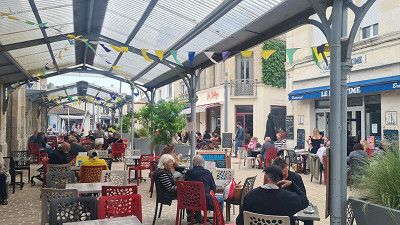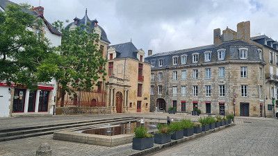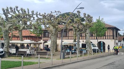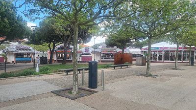 Die Rückfahrt. Ich fahre weiter auf dem gefühlt endlosen Boulevard de l'Ozéan (8). Neben den Prunkhotels (9) und Appartmentblocks gibt es hier nicht mehr viele alte Villen (10). Vor dem letzten Viertel der Bucht stoppt mich eine Strassensanierung (11). Und so fahre ich ins Centre Ville von Baule-Escoublac zum Besuch von Bahnhof, Rathaus und Ladenmeile, der Avenue Louis Lajarrige mit dem eBike an der Hand(12-15). Dann wird es Zeit für die Rückfahrt zum Camp über die Orte Careil und Kercandon. Im Café Centre in Guérande setze ich mich auf den Boulevard und bestelle ein belgisches Abteibier. Heute Montag ist es im Zentrum auffallend ruhiger als noch noch gestern Sonntag.