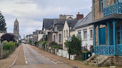 Die Fahrt. Die heutige Rundfahrt geht über 45 Kilometer. Die ersten 10 davon sind bekannt, ich fahre wieder durch die Marais Salants (1-2) bis zum ersten Halt in Batz-sur-Mer. Dann folge ich 12 Kilometer der Côte de Sauvage, in weiteren 10 Kilometern umrunde ich die Westspitze der Halbinsel Kervenel und fahre zum zweiten Halt in Le Crosic. Auf den letzten Kilometern sehe ich mir noch ein Kriegsdenkmal an, ehe ich durch die Orte Trégaté, Saillé wieder nach Guérande komme.
