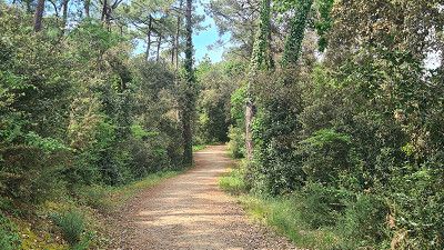 Die Wanderung. Die erste Stunde folge ich dem Wanderweg der Küste südwärts (1-4). Beim Plage de la Bergère (5-6) verlasse ich die Küste und laufe durch den Wald (7) zum Pet de la Pley und seiner Aussichtstreppe Escalier dans le Ciel (8-10). Von der Plattform sieht man gut ins Rund der Waldlandschaft nach Fromentine oder Barre-de-Monts (11-13). Eine letze Stunde Weg durch Wald (14) und Fromentine (15) liegen jetzt noch vor mir, ehe ich den Tag im Wohnmobil beende.