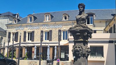 Die Kulinarik. Auf halb ein Uhr laufe ich zum Gourmetrestaurant im Hotel au vieux Morvan, dem einzigen gehobenen Lokal in Château-Chinon (1-2). Ein letztes Mal bestelle ich vom Formule die Auswahl Tartine de Filet de Truite, Tournedos de Magret de Canard und Fromages régionale (2-5), dazu ein Glas Savigny Les Beaunes. Alles ist excellent.