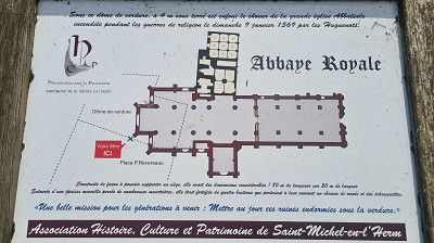 Der Besuch. Die Ruinen der Abtei sind vorübergehend leider nur von aussen zu besichtigen (5-9). In Saint-Michel-en-L'Herm (10-12) gibt es ansonsten nicht viel zu sehen. Die Gastronomie ist geschlossen. Ich verpflege mich wie einige andere Radfahrer mit Fast Food von Carrefour.