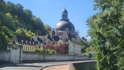 Der Besuch. Drei Kilometer weiter liegt mein zweites Ziel, der kleine Ort Montsoreau an der Loire (6). Ich laufe eine halbe Stunde durch den Ortskern (7-9) bis zum Château (10). Der Blick von aussen genügt mir, auf das Musée verzichte ich. Ich folge nun für die Rückfahrt der Loire flussabwärts und komme unter anderem vorbei am Chàteau de la Fessardière (11), einem der vielen Châteaus in dieser Gegend, kleinen, grossen, erhaltenen oder am Verfallen. Traumhaft ist aber auch die Fahrt durch den Naturpark mit den Ausblicken auf die Loire (12-14). Dann kommt die Chapelle Royale des Ardilliers (15) ins Sichtfeld und damit endet die heutige Velotour. Im Zentrum von Saumur kaufe ich ein und genehmige mir auf dem Boulevard noch ein Grimbergen Ambrée.