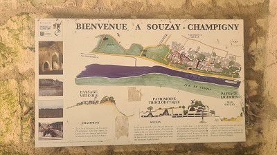 Gut zu wissen. Souzay-Champigny ist eine französische Gemeinde mit 691 Einwohnern im Département Maine-et-Loire in der Region Pays de la Loire. Sie gehört zum Arrondissement und Kanton Saumur. Die Gemeinde liegt 6 Kilometer östlich von Saumur und besteht aus zwei Siedlungen, die zwei Kilometer auseinanderliegen, Souzay und Champigny. Die Zusammenlegung der beiden Orte datiert aus dem Jahr 1930. Das Gemeindegebiet ist Bestandteil des Regionalen Naturparks Loire-Anjou-Touraine. Sehenswürdigkeiten: Château de Villeneuve; Manoir de La Vignolle, auch "Château de Marguerite d’Anjou" genannt, Witwe des englischen Königs Heinrich VI., starb hier am 25. August 1482; Parcours Troglodytique. © Wikipedia.