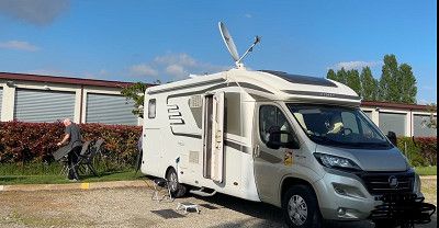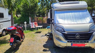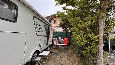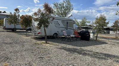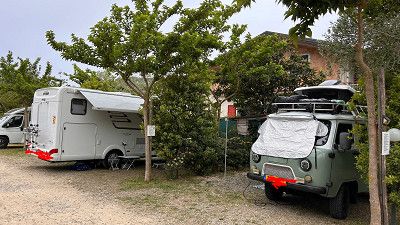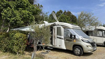Stehen hier auf einem kleinen Platz Elisabeth spricht deutsch, sie ist sehr nett & hilfsbereit. Aber ich würde empfehlen nicht mit größeren WoMo‘s zu kommen. Wir sind 7,50m das passt grade, da die Plätze nicht viel länger sind.