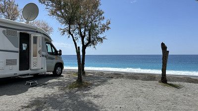 Sind auf einem schönen Stellplatz mit super schönen Strand. 🏖️