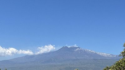 Der Etna war heute Morgen wieder schön zu sehen. Waren am Strand spazieren, aber der Wind 💨 war heftig.
