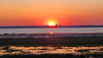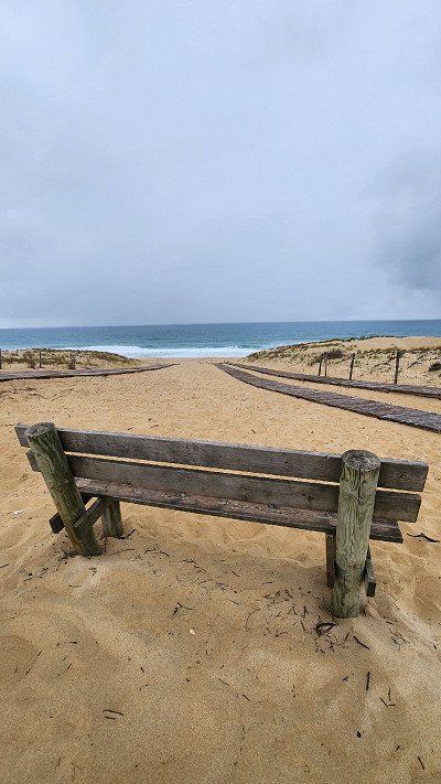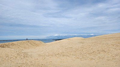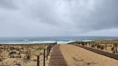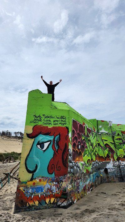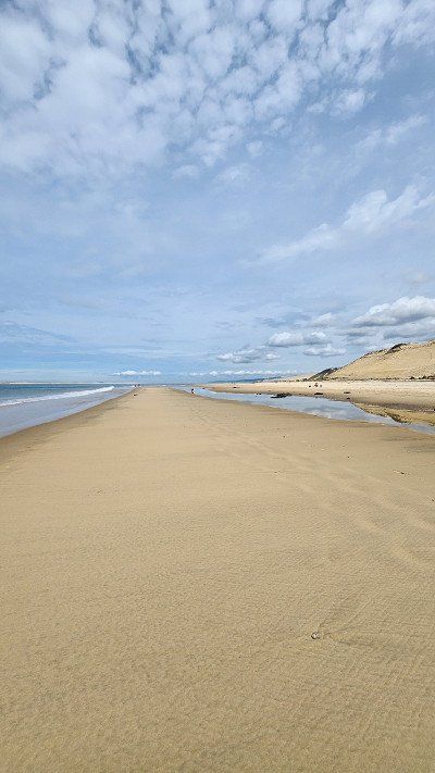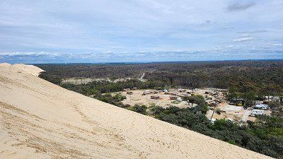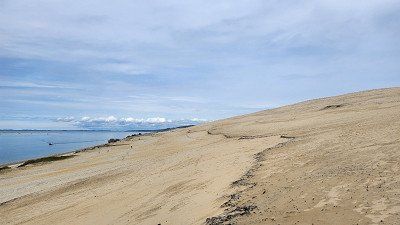 Zunächst nach La Teste-de-Buch und die Bestellung abholen, dann der Herausforderung einen Parkplatz an der Düne zu finden annehmen... Der Hauptparkplatz war um 12:00 Uhr bereits wieder geschlossen, da voll. In Le Petit Nice nicht ganz regelkonform auf einen Parkplatz, der "eigentlich" nur für Fahrzeuge bis 1,90 m ist, gefahren (wir waren nicht die einzigen mit Camper)... Durch Abbrüche der Küste nur Steilküste - auch runter zum Strand kam man nicht ganz erlaubt. Ca. 1,5 Std. Fußmarsch zur und auf die Dune du Pilat. Super Ausblick und dann wieder zurück. Da Camper/WoMos dort nicht erlaubt waren, haben wir schließlich in Arcachon auf einem Parkplatz (für WoMos erlaubt, an der Hauptstraße, aber ohne Kosten) geparkt und übernachtet.
