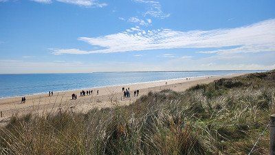Gestartet bei bestem Wetter, wollten wir einen Teil der längsten Straßenbahnstrecke der Welt erkunden (Tageskarte 7,50 Euro). Da man jederzeit aus- und wieder einsteigen darf, war als Zwischenstopp der Besuch des Atlantikwalls geplant. Schon bei Ankunft in Raversyde, regnete es und es wurde nicht besser... Zwei Stunden später waren wir über den Atlantikwall im 1. und 2. Weltkrieg bestens informiert, aber klatschnass und durchgefroren. Die Küstentram war rappelvoll und die Scheiben beschlagen - Abbruch und zurück zum Camper.
